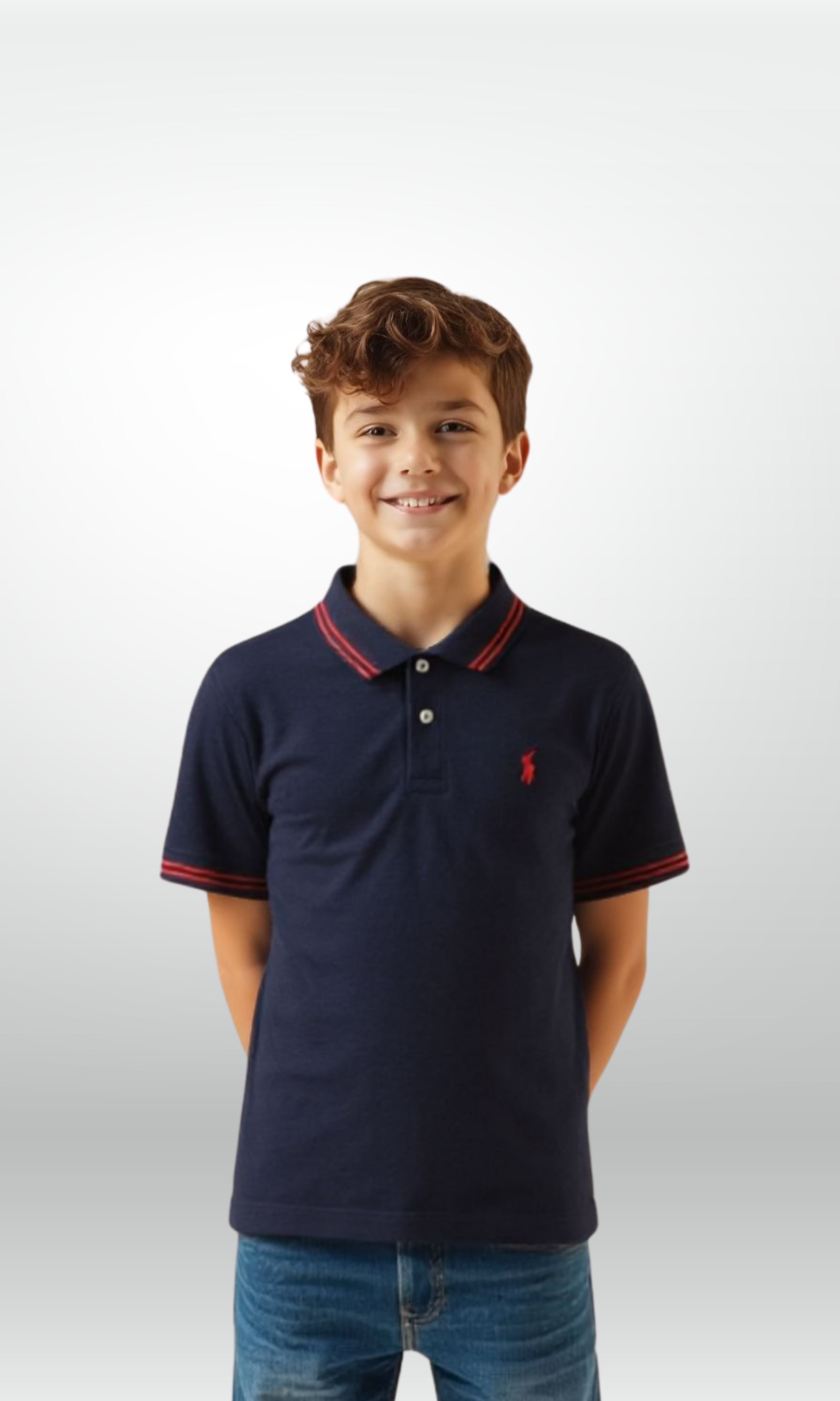 Kids Cotton Mesh Polo T-Shirt (Navy Blue)