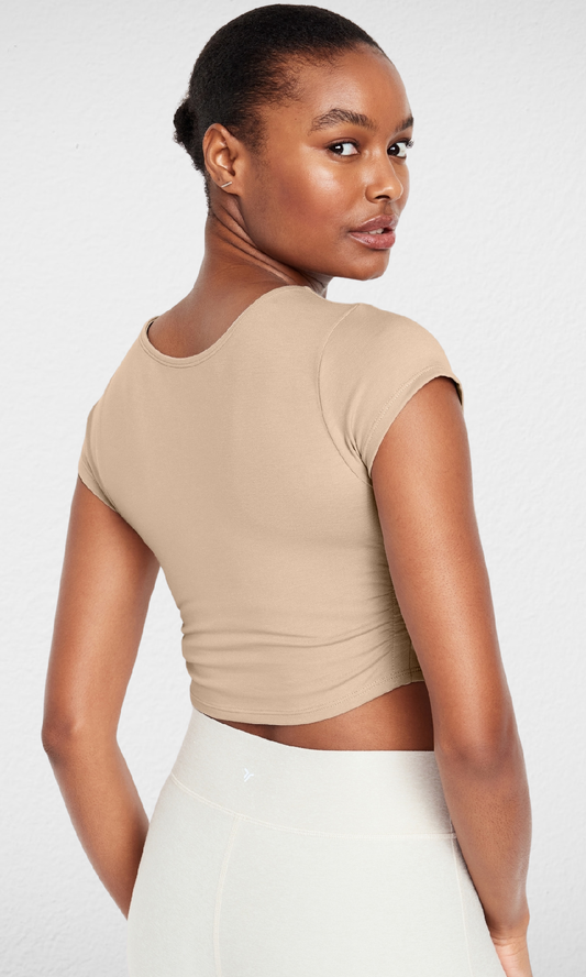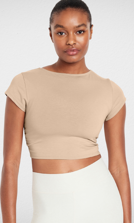 Women Sports Cropped T-shirt (Beige)